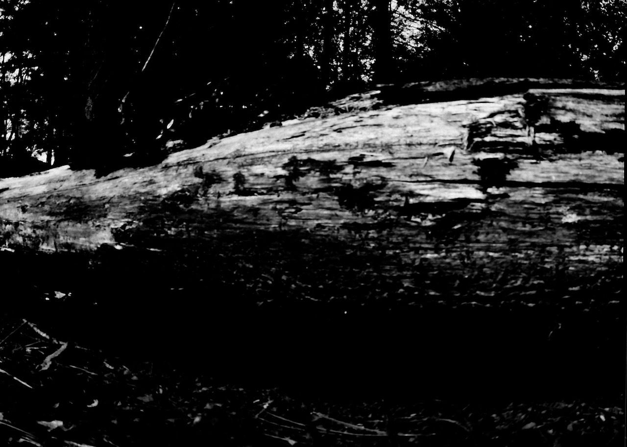Pinhole photograph of a cedar log. Birmingham, Alabama 2009. Own photo.