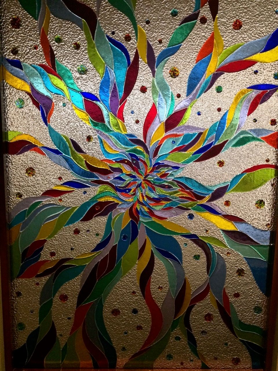 Stained glass window from St. Vincent’s East, Birmingham, 2017. Own Photo.