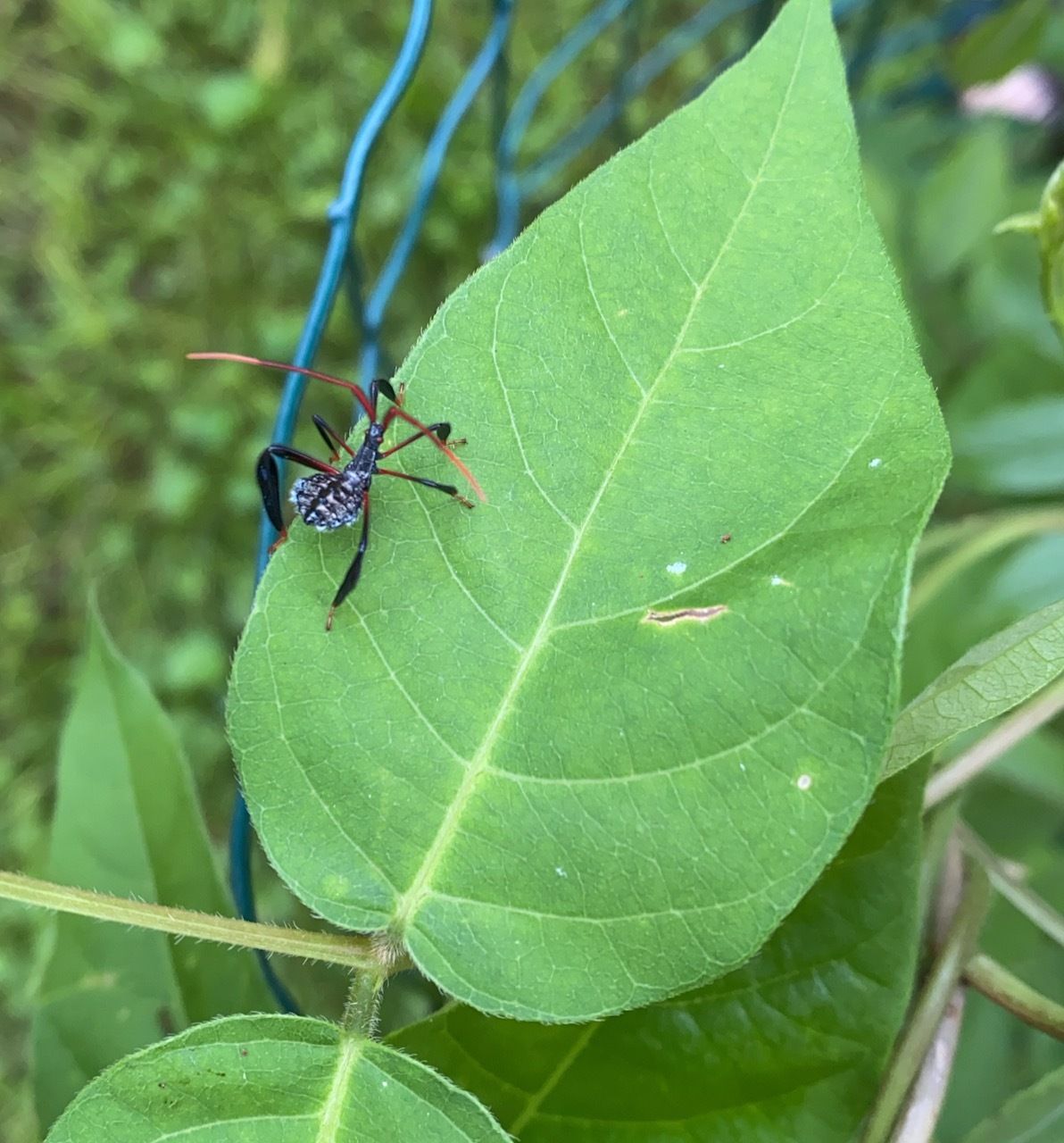 Juvenile leaf-footed bug. They are garden pests, but beautiful creatures. 2025. Own photo.